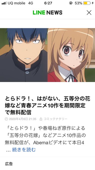 とらドラ はがない 五等分の花嫁など青春アニメ10作を期間限定で無料配信 コミックナタリー