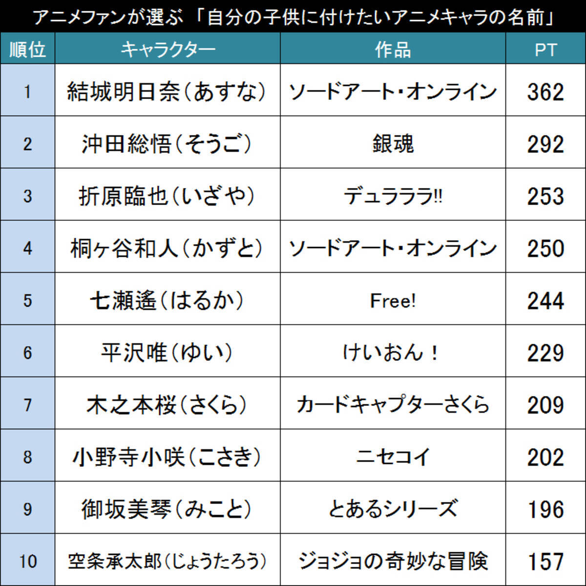 将来はあのキャラのように アニメファンが選ぶ 自分の子供に付けたいアニメキャラの名前 top20 2015年7月16日 エキサイトニュース