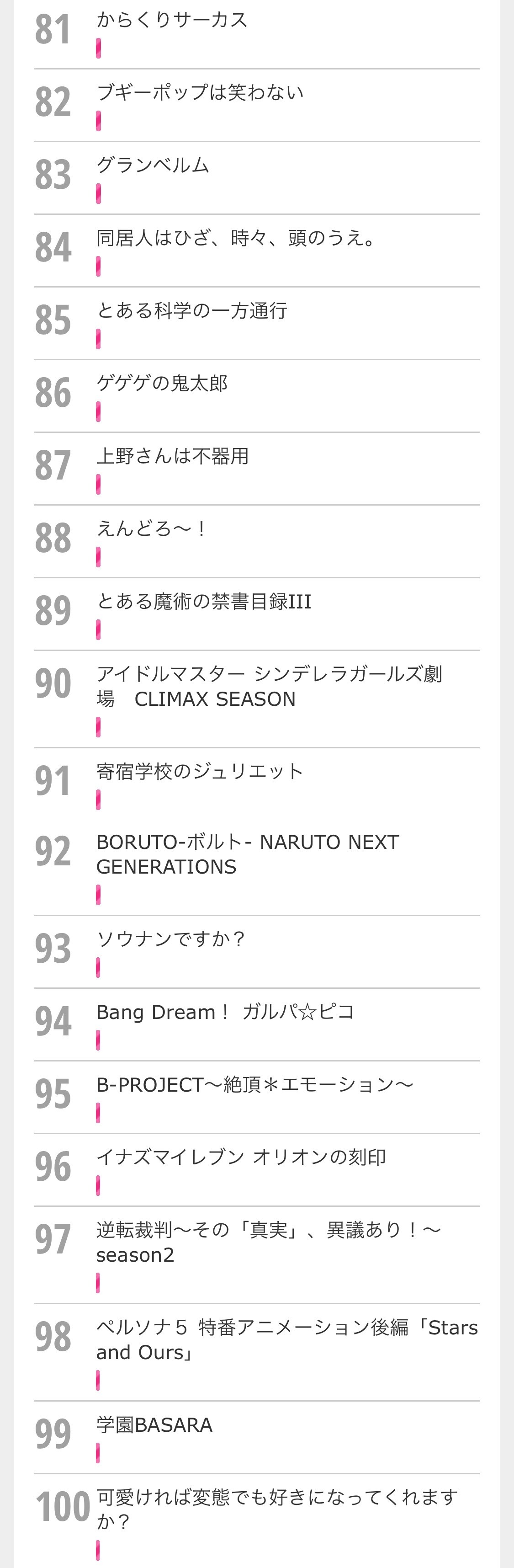 テレビ朝日の集計が怪しい アニメランキングトップ100 漫画やアニメ関連