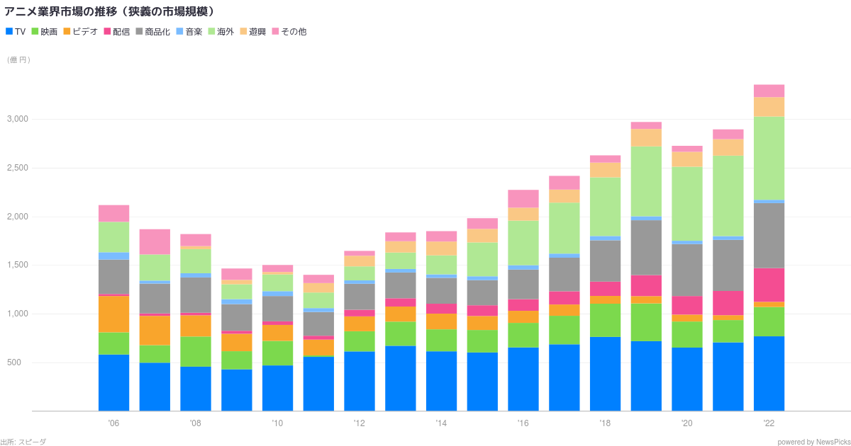 newspicks アニメ業界市場の推移 狭義の市場規模