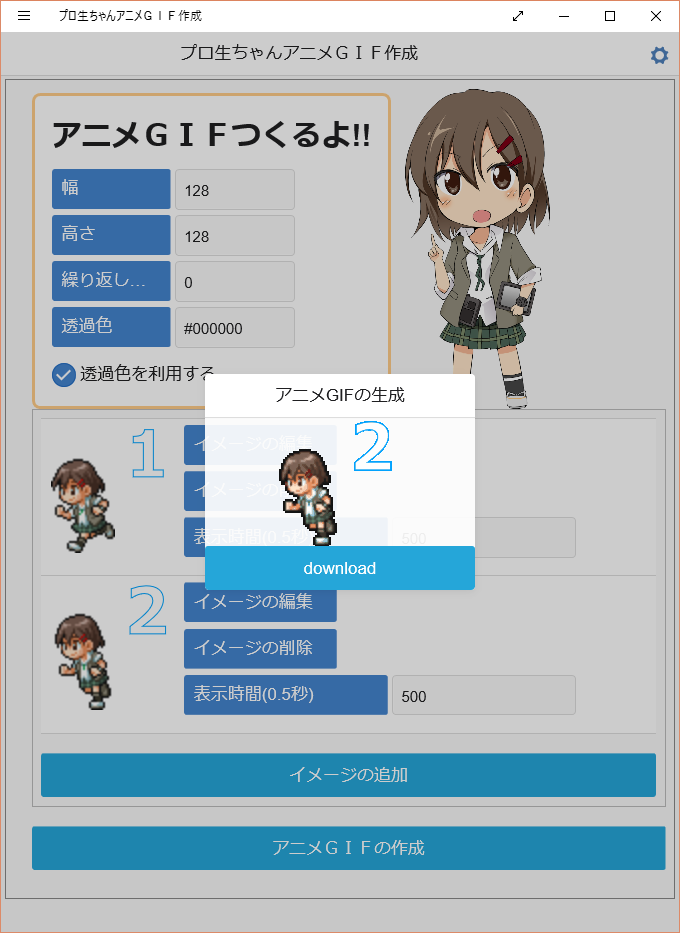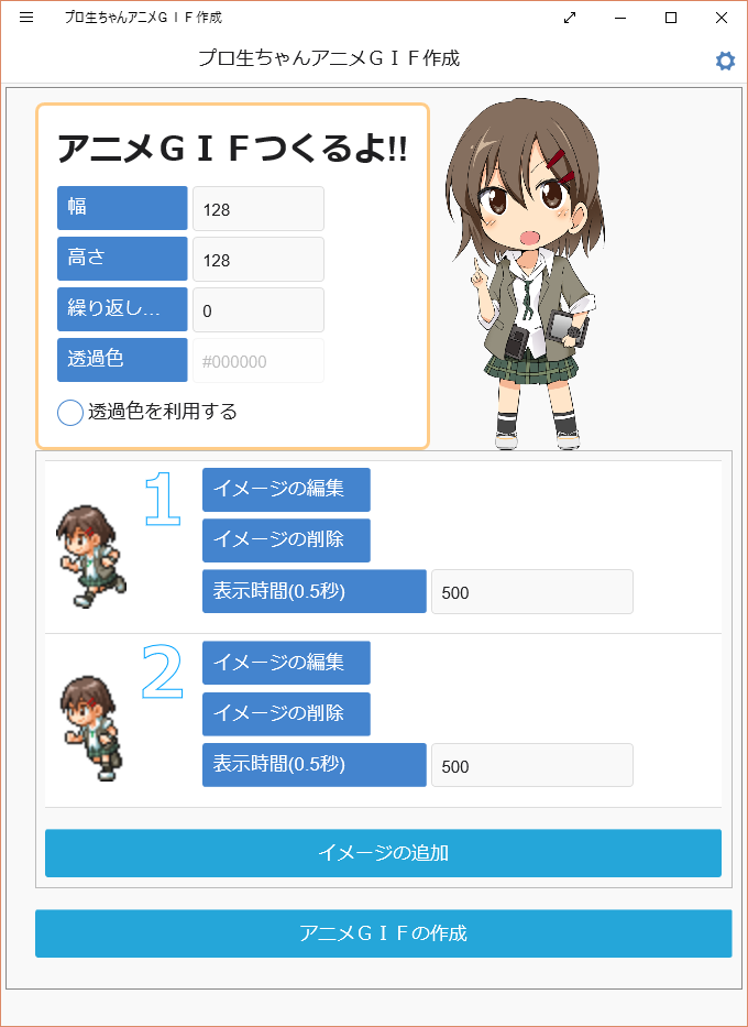 プロ生ちゃんとアニメ gif を作成できる プロ生ちゃんアニメ gif 作成 プログラミング生放送