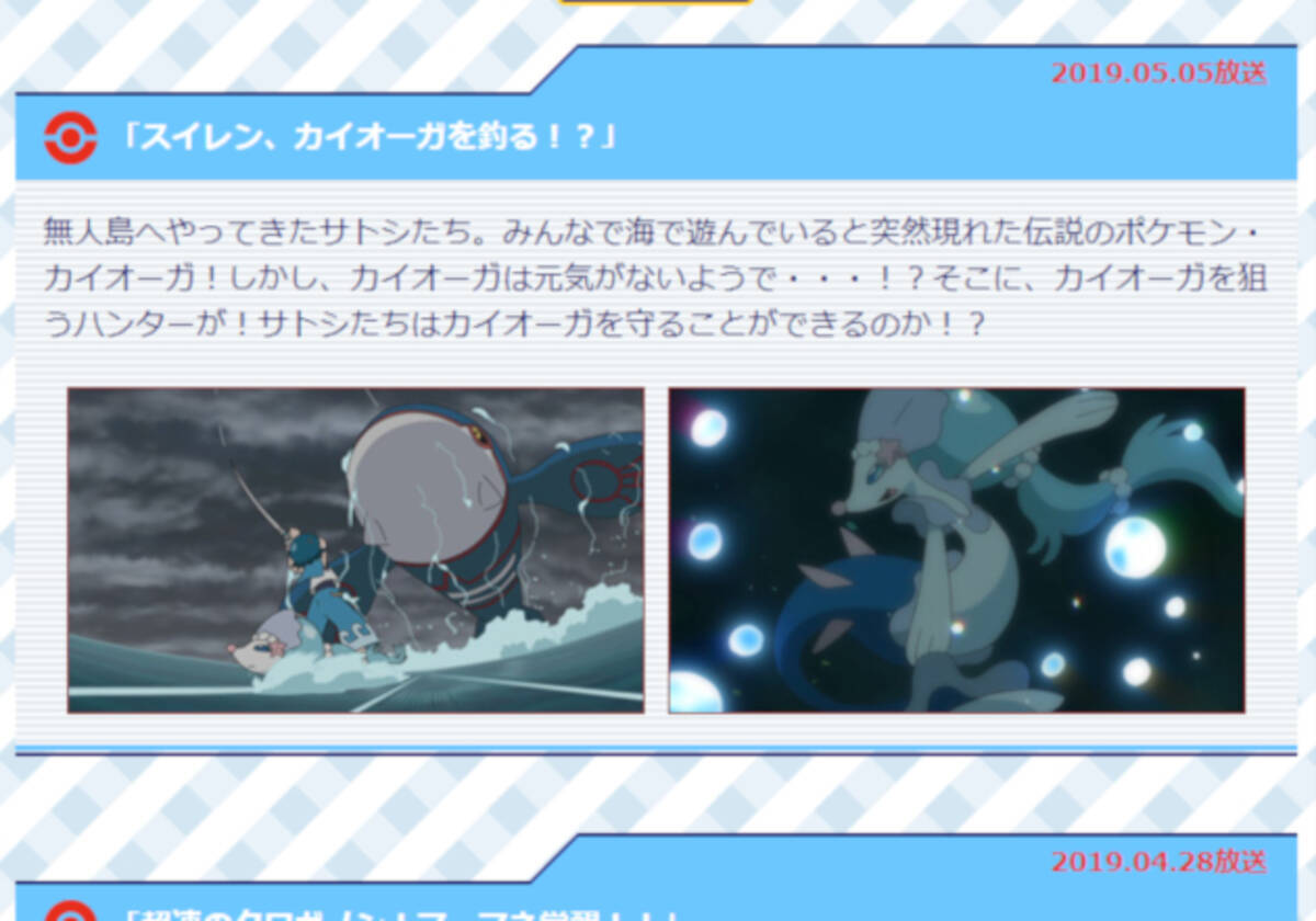 ポケットモンスター サン ムーン スイレン カイオーガを釣る テレビ東京 2019 5 5 18 00 oa の番組情報ページ テレビ東京 bsテレ東 7ch 公式