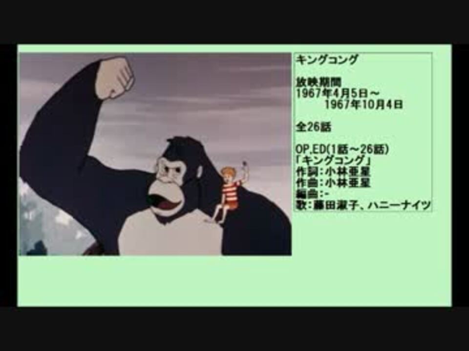 適当再現 キングコング 昭和42年アニメ版 op king kong theme song of japanese 60 tv youtube