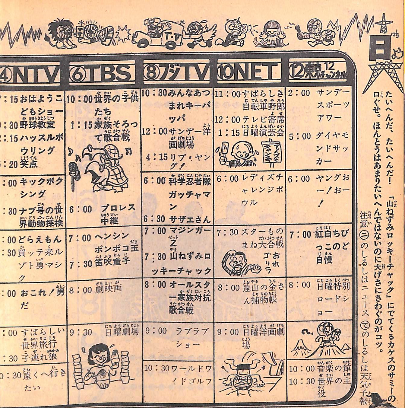 ま on twitter 国際放映人形アニメ投入の始祖 コメットさん のブラザー劇場 ミツルギ班が参加した ポンポコ玉 のタケダアワー 梅村佳史p担当の 美しきチャレンジャー 不二家の時間が近い時期に時代劇を放送していることから 魔人ハンター