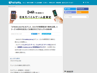 10周年 シュタインズ ゲート tvアニメ全話 劇場版アニメ コミカライズ5作品が期間限定で無料公開へ ゲーム情報 ゲームのはなし