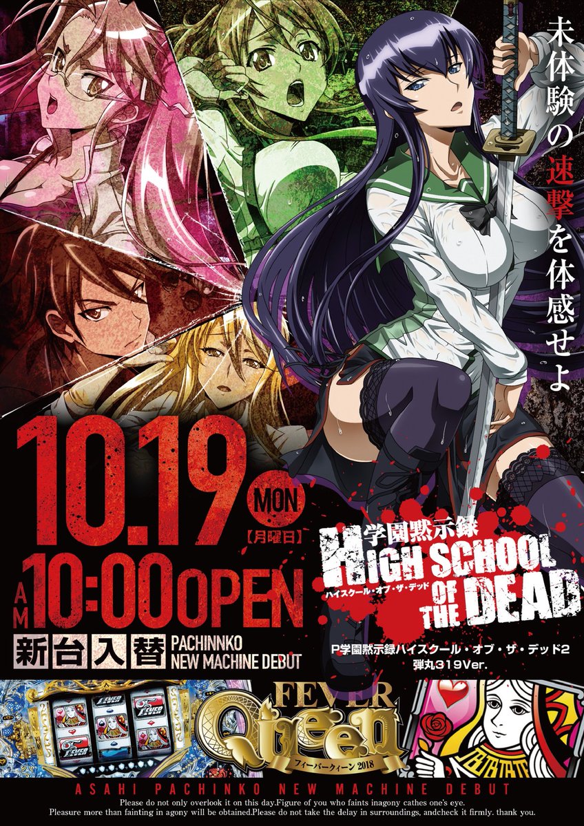 卍丸 アサヒ幡ヶ谷 on twitter 10月19日の新台入替は p学園黙示録ハイスクール オブ ザ デッド2 sダンジョンに出会いを求めるのは間違っているだろうか 学園黙示録hotdのタイアップ機 最大の特徴はなんといっても出玉速度 大当り間は平均124秒 これは大当り