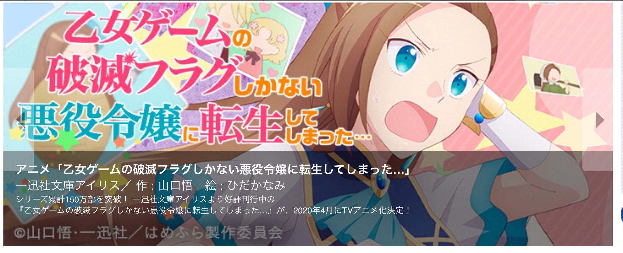 一迅社の宣伝課です בטוויטר 2020年 tvアニメ放送決定 シリーズ累計150万部突破 乙女ゲームの破滅フラグしかない悪役令嬢に転生してしまった 原作ノベル8巻 コミカライズ3巻 発売中 が遂にテレビアニメ放送決定です https t co my8otg4poo アニメ