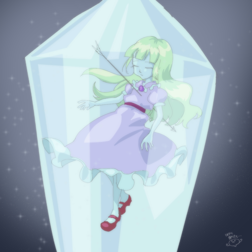 令和だしそろそろ姫の封印を解かないか 胸に矢が刺さってて結晶化してる金髪のヒロインが出てくるアニメ togetter