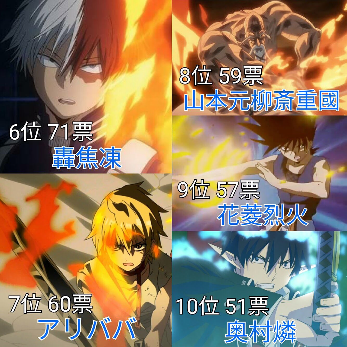 あき on twitter 炎 火 が似合うアニメキャラランキング 投票数 2316 名前のあがったキャラ 134