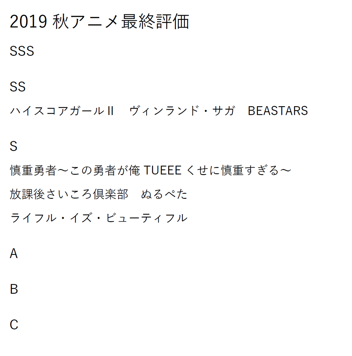 japanimer 秋アニメ 評価