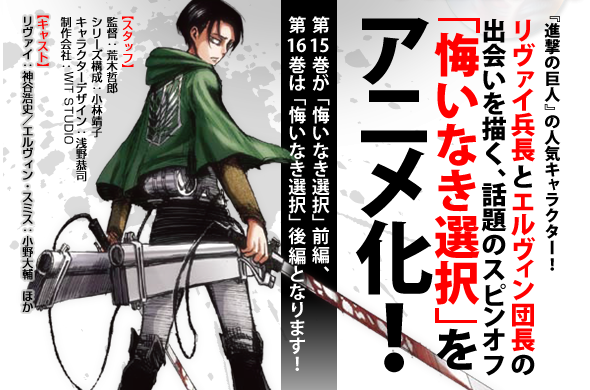 4月1日は90分ぶっ通し 進撃の巨人 スペシャル リヴァイとエルヴィンの出会いを描いた 悔いなき選択 1時間spの放送が決定 にじめん