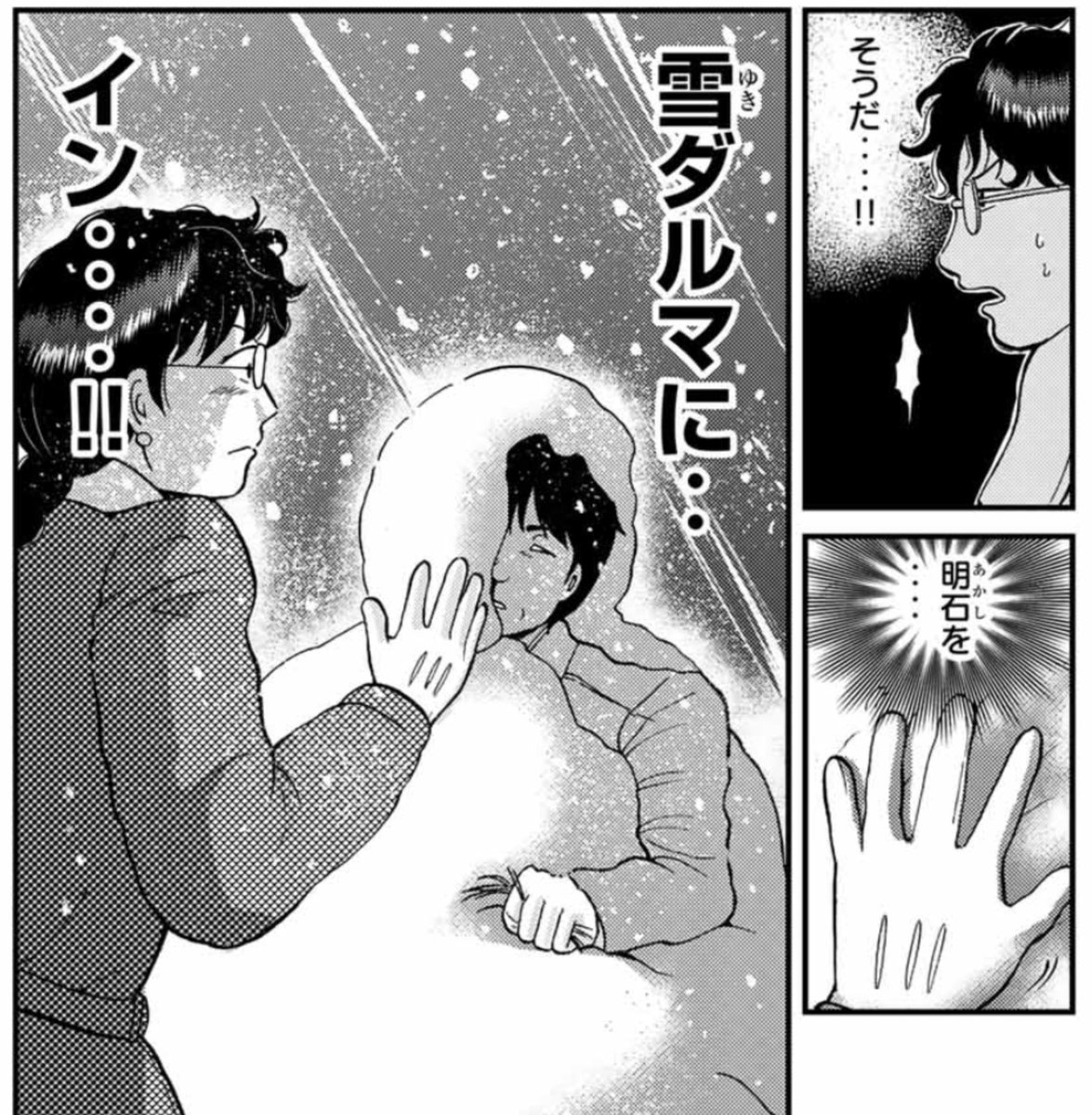 ミッチェル twitterissa 雪夜叉伝説殺人事件 ですね 描いてる時はそんな意識してなかったんだけど 確か雪だるまに埋められてたのが明石さん