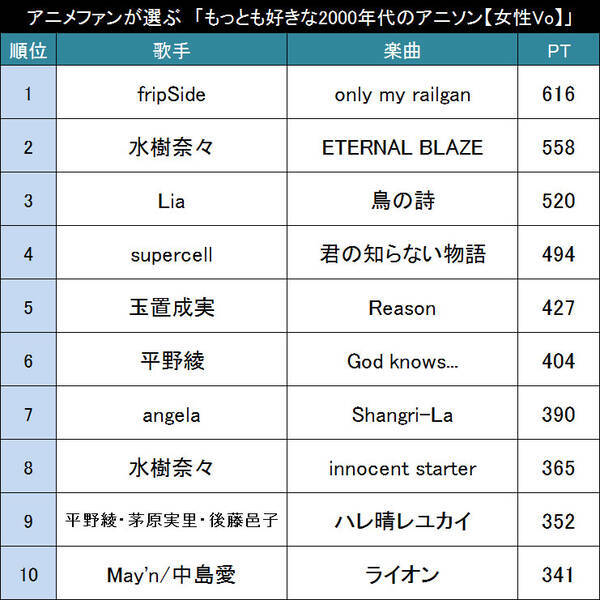 2000年代 男性ボーカル限定 アニメファンが選ぶ もっとも好きな2000年代のアニソン 女性vo top20 2016年10月20日 エキサイトニュース