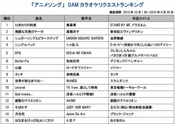 漫画原作アニソンのカラオケリクエストランキング 1位はドラえもん 秦基博 ひまわりの約束 2016年11月1日 エキサイトニュース