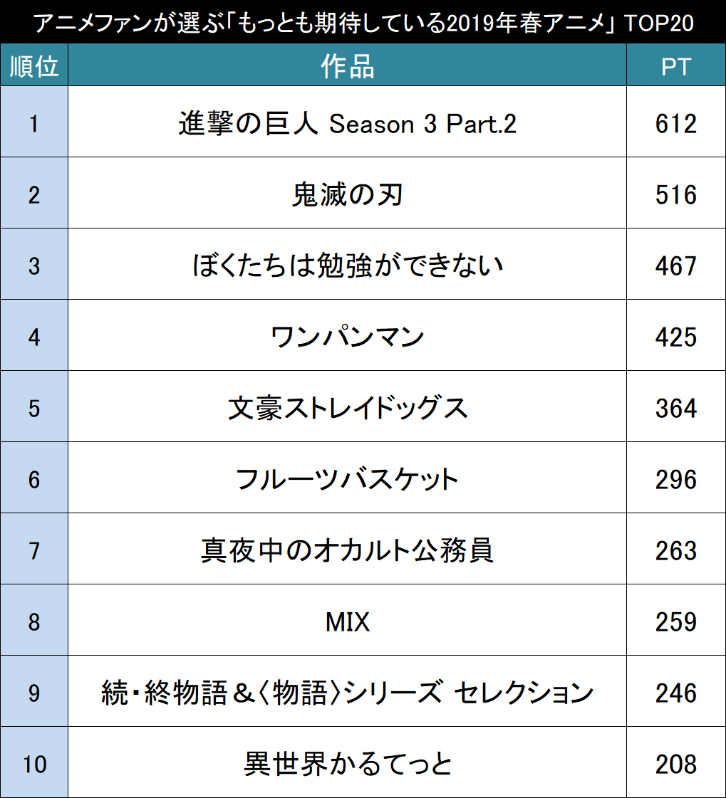 豊作 それとも不作 アニメファンが選ぶ もっとも期待している2019年冬アニメ作品 top20 2018年12月6日 エキサイトニュース