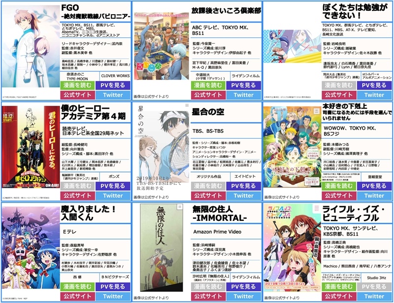 2019年 10月アニメ 秋アニメ neowing