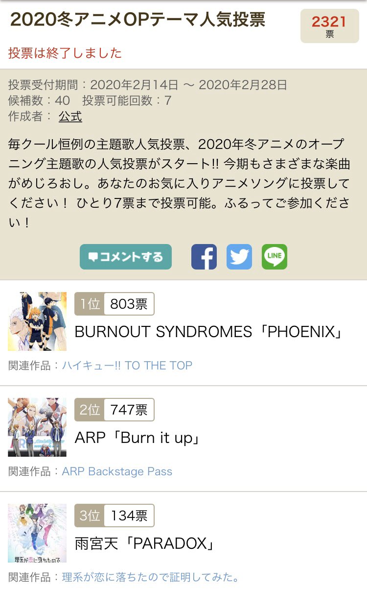 公式投票企画 2020冬アニメopテーマ人気投票 スタート アキバ総研
