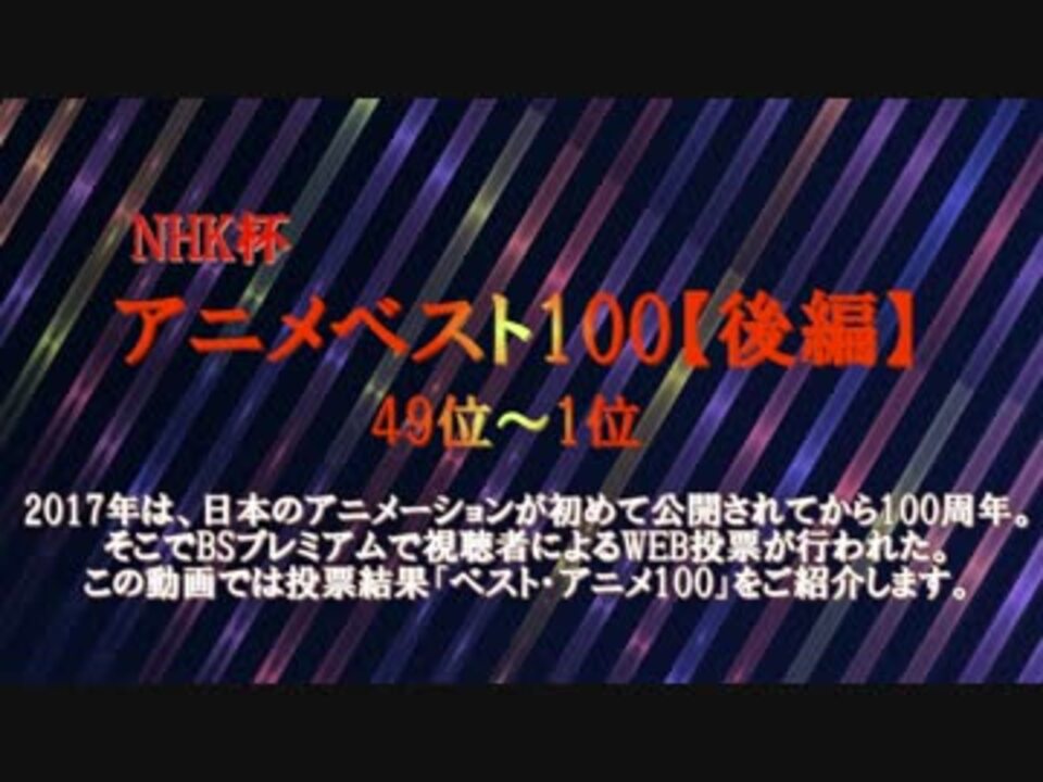 nhk 発表 あなたが選ぶアニメ ベスト100 ランキング順位まとめ おすすめオススメ